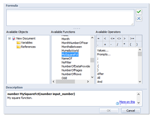 - Deux nouveaux graphes (jauges et tuiles) et possibilité de créer ses propres fonctions de calcul sous Web Intelligence
